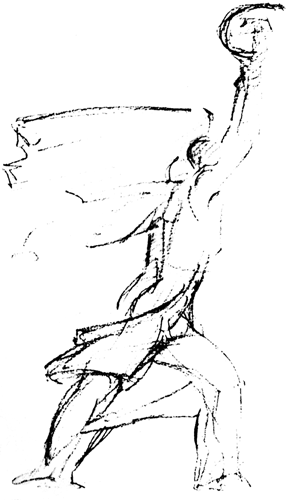 Римская копия с греческого оригинала.Но как бы там ни было, сам ли Иофан придумал первый эскиз "Рабочего и колхозницы" и "врисовал" его в свой проект, или же он воспользовался каким-либо источником для визуального формулирования этой идеи, но его предложение о постройке здания с парной статуей на крыше было принято и подлежало осуществлению. Однако необходимо сразу же отметить, что даже если считать этот рисунок одним из конкретных проектов будущей статуи, то он, пожалуй, наиболее сильно отличался от того, что было создано затем в натуре. Отличался не общей композицией, которая действительно была найдена и задана Иофаном, но характером ее воплощения. На нарушение этой композиции пошел в своем конкурсном проекте лишь И. Шадр. Отличие же рисунка Иофана от других проектов - в деталях, в передаче движения, в позе и т.д. Но прежде чем переходить к конкурсу на проект статуи "Рабочий и колхозница", посмотрим, каким путем к воплощению этой идеи шла В.И. Мухина.