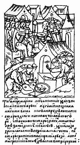 По миниатюре XVI в. Принцип тиснения издавна использовался и при изготовлении монеты - металлических денег, которые, как считают ученые, впервые появились в малоазийском государстве Лидии в VII в. до Р.Х. [7]. Чеканили их из сплава серебра и золота. В Древней Греции и Риме кружок металла помещали между штемпелями в виде металлических брусков, на торцах которых были выгравированы рельефные изображения лицевой и оборотной сторон монеты. Иногда эти штемпели соединяли между собой в виде клещей.Само слово монета было одним из прозвищ римской богини Юноны, в храме которой одно время был расположен монетный двор.