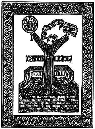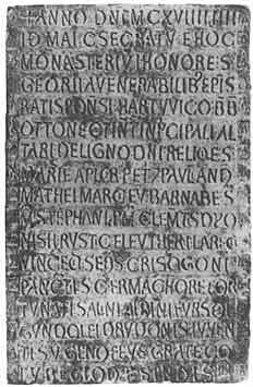 "Нужно сделать ей буквы либо буковые, либо из слоновой кости и назвать их ей. Пусть играет с ними и, играючи, обучается, и пусть она запоминает не только порядок букв и не только по памяти напевает их названия, но пусть ей неоднократно путают и самый порядок, перемешивая средние буквы с последними, начальные со средними, дабы она знала их не только по звуку, но и по виду".Не было забыто в средние века и тиснение отдельными штампами. Один из исследователей раннего книгопечатания Отто Хупп опубликовал в 1906 г. сведения о глиняной плите размером 400 Х 260 мм, обнаруженной в бенедиктинском монастыре Прюфенинг близ Регенсбурга [19]. На плите была латинская надпись, сделанная 12 мая 1119 г. по случаю освящения монастырской церкви и содержавшая перечисление святынь, которые хранились в алтаре. Хупп установил, что буквы оттиснуты с помощью отдельных штампиков, изготовленных из дерева, а может быть, и из металла. Надпись содержит 17 строк, в каждой из них по 20-22 буквы. Вдавлены они на глубину около 2 мм. Высота каждой буквы 16-17 мм. Общее число штампов - 30. Пo краям надписи - орнаментальная рамка, также оттиснутая отдельными штампиками.