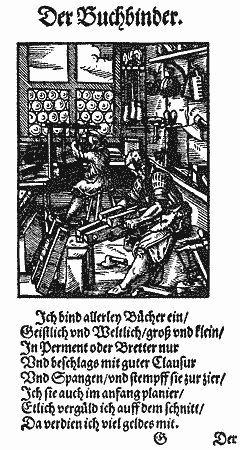 Более близкий к нашей теме пример - тиснение на кожаных книжных переплетах. Печатная книга полностью и без каких-либо изменений заимствовала переплетную технику рукописания, более подробный разговор о чем еще пойдет ниже. В этой области ни Гутенберг, ни его последователи не сказали ничего нового. В то же время в переплетном деле было много такого, что могло натолкнуть на мысль о полиграфическом процессе.