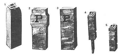 Пуансоны и матрицы, словолитная форма, состав типографского сплава, конструктивные и техологические приемы которых были найдены в XV в., в течение многих десятилетий принципиально не изменялись. Они служили человечеству не менее 400 лет - до тех пор, пока в середине XIX в. в практику полиграфического производства не вошли шрифтолитейные машины.