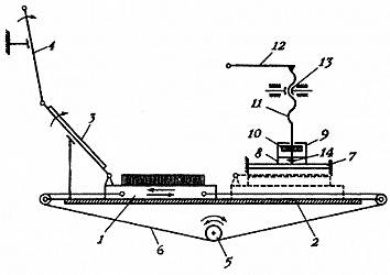 в момент заливки в нее расплавленного металла. Нижнюю и верхнюю части формы складывали таким образом, чтобы выступы с входили в пазы g. Пирамидообразный литник при этом образовывали скошенные плоскости d и е, а рабочая полость возникала между плоскостями а. К отверстию в нижней части полости прижимали матрицу fg с углубленным рельефным изображением Е шрифтового знака. Матрица фиксировалась плоскостями i,i формы. Точное положение очка обеспечивала юстировочная игла h, крепившаяся на поводке. Иглу вставляли в отверстие в задней плоскости матрицы.