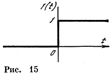 С чисто математической точки зрения содержание тоже очень интересно. Хевисайд, например, уже с самого начала вводит понятие производной дробного порядка. Если обозначить оператор производной по времени d/dt = р, то операционное исчисление приводит к необходимости определить, какой результат дает действие на функцию оператора p1/2. Хевисайд называет его оператором дробного дифференцирования. Он определяет результат действия p1/2 на единичную функцию 1(t). Про эту функцию мы уже говорили. Она теперь называется функцией Хевисайда. Эта функция равна нулю во все отрицательные моменты времени и равна единице во все положительные моменты времени. График функции Хевисайда имеет вид ступеньки (рис. 15).