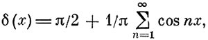 Хевисайд замечает, что это разложение описывает дельта-функцию лишь в промежутке значений х от -p до p (или в любом промежутке длиною в 2p, содержащем точку х = 0). Если же рассматривать всю ось х, то это разложение дает целый "частокол" из дельта-функций, отстоящих друг от друга на 2p. Это следует из общей теории рядов Фурье. В современных книгах, где приводится такое или аналогичное разложение, редко можно увидеть соответствующую оговорку, а уж ссылку на Хевисайда вы никогда не увидите.