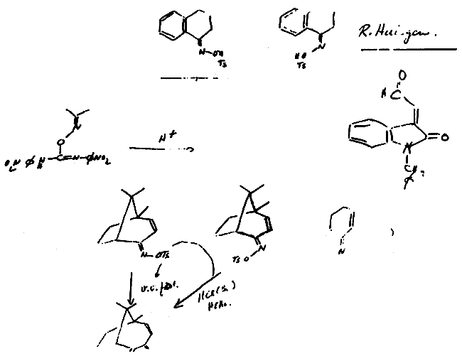 Выше уже приводился образец современной химической статьи (рис. 12.2). Взгляните на этот рисунок еще раз и обратите внимание на чертежи, выполненные в неформальной манере. Рисунки такого типа составляют часть той информации, которой обмениваются химики даже при обычной беседе, и их можно обнаружить, например, на скатерти или бумажных салфетках в ресторане после дружеского ужина коллег-химиков. На рис. 15.1 показаны подобные наброски, выполненные знаменитым химиком-органиком Р. Б. Вудвортом *.