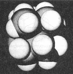 На еще более высоком уровне исследования химику захочется увидеть "реальные" межатомные расстояния, т. е. получить изображение молекулы с точными пропорциями. Такие тонкости молекулярного строения в настоящее время легко выявить, используя быстрый и довольно дешевый метод рентгеновской кристаллографии, о которой я уже рассказывал выше. В результате этого исследования химик получит еще одно изображение структуры (рис. 15.5), напоминающее произведения компьютерной графики [55].