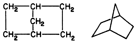 Такие факторы, как общая направленность журнала, его экономические проблемы и используемая технология влияют не только на содержание печатной продукции, но и на характер наших размышлений о молекулах. Например, примерно до 1950 г. ни один журнал не был готов к тому, чтобы опубликовать на своих страницах структуру норборнана, показанную на рис. 16.4, справа. В журналах можно было встретить только структуру, приведенную на рис. 16.4, слева, хотя было давно (еще в 1874 г.) известно, что атом углерода является тетраэдрическим, т. е. образует четыре связи, направленные из центра тетраэдра к его вершинам.
