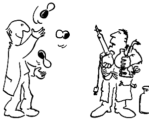Еще одно неизбежное противоречие возникает в каждой статье между экспериментом и теорией. Не секрет, что экспериментаторы и теоретики испытывают друг к другу сложные, смешанные чувства типа "любовь-ненависть". Заменив экспериментаторов и теоретиков на "писателей" и "критиков", мы сразу обнаруживаем стандартную литературоведческую ситуацию. Аналоги таких отношений легко выявить почти в любой науке (например, в экономике), позиции сторон при этом очевидны и хорошо вписываются в рамки карикатурных образов (рис. 17.1 и 17.2).