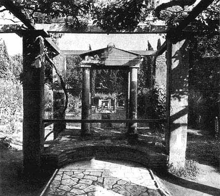 * Цицерон. Речь в защиту Публия Цестия, 98.Римский особняк, домус, состоял из двух половин - официальной, где комнаты были сосредоточены вокруг очень высокого зала, атрия, и семейной, центром которой был внутренний дворик - перистиль. В крыше и атрия и перистиля находился световой колодец, а под ним бассейн, куда собиралась дождевая вода. Но если в атрии он лишь хранил воду (когда дождей долго не было, его заполняли водопроводной водой), то в перистиле положение было более сложным и разнообразным. Углубленное в землю пространство под световым колодцем здесь редко бывало целиком занято обычным бассейном *.* Таково положение, например, в помпейских домах Пансы или Кастора и Поллукса.Чаще в центре его располагался большой фонтан, а вокруг - фонтаны поменьше, так что в жаркие дневные часы весь перистиль заполнялся шелестом воды и солнечными бликами, отражавшимися в ее струях *. В других случаях здесь располагался садик, и вода била в самых разных направлениях из трубок, скрытых внутри заполнявших его небольших скульптур **. В роскошном доме Лорея Тибуртина на восточной окраине Помпей, которому суждено было так и остаться недостроенным к моменту катастрофы, уничтожившей город, перистиль переходил в галерею, по всей ее длине тек ручей, кончавшийся серией каскадов, а посреди русла возвышался маленький храм, окруженный фонтанами. Там же, в Помпеях, есть дом, знакомящий нас с еще одной очень распространенной разновидностью фонтана. Его перистиль завершается глубокой нишей, целиком покрытой драгоценными мозаиками и инкрустациями из полихромной стеклянной массы. В глубине ниши - большая вакхическая маска, при выходе - малые, очень реалистические бронзовые статуи: мальчик, играющий с птицей, рыбак, ребенок, заснувший возле опрокинутой амфоры. Изо рта маски, из клюва птицы, из горлышка амфоры били струи воды, со звоном падавшие в омывающий нишу бассейн. Такое помещение, центр которого всегда составлял фонтан, римляне называли - нимфей. Их было много, прохладных и порой очень красивых, и в частных домах и в общественных местах как в Риме, так и во многих городах империи ***.* Основания большого фонтана и окружавших его малых сохранились, например, в Помпеях в доме Мелеагра (см. ил. №22). Поразительный эстетический эффект был достигнут там же, в Помпеях, в так называемом Доме Черного якоря (см. ил. №46). Перистиль его был в два этажа, поверху - портик, внизу - ниши со скульптурами; в узкой стене напротив выхода из атрия располагался большой нимфей, а по бокам от него - статуи, скрывавшие водометы. Струившаяся из них вода омывала и орошала партер декоративных растений и цветов. См.: Eschebach Н. Pompeji. Еrliebte antike Welt. Leipzig, Seemann Verlag,1978, S.310, Abb. 178. На сопоставлении водного партера и скульптур основывалось эстетическое воздействие Египетского бассейна ("Канопы") на вилле Адриана в Тиволи (см. ил. №24).Вот здесь-то, обязательно около воды, и протекал otium римлянина. Здесь, в завершающей перистиль нише, ведет с друзьями свой разговор о дружбе Гай Лелий - герой одноименного диалога Цицерона. На перистиль и его фонтаны выходили по большей части столовые, где протекал обед с друзьями, за которым читались стихи и исполнялись музыкальные произведения. В доме Лорея Тибуртина непосредственно над каскадами, упомянутыми только что, располагалась столовая с ложами всего на двух сотрапезников-со