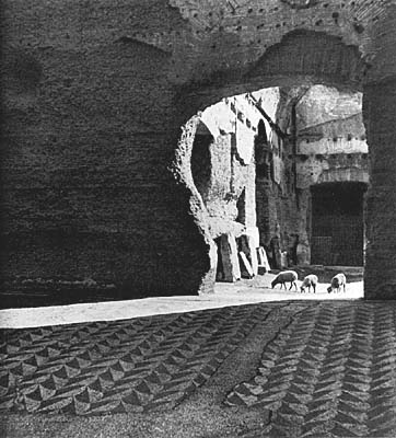 Не менее примечательны были римские городские купальни и развившиеся из них общественные бани, или термы. Здесь, среди десятков тысяч людей, заполнявших неоглядных размеров залы, переходы, портики, исчезали общественные перегородки, бывшие обязательными в античном мире, устанавливалась социально-культурная однородность, немыслимая в рамках полиса и практически отрицавшая его.