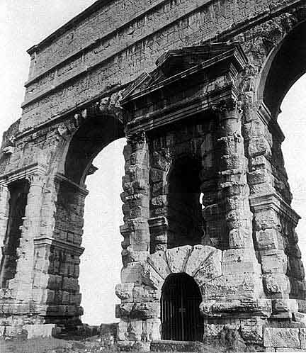 * См. примечание ко второму, историческому, "Введению".Первые императорские водопроводы, Юлиев и Дева, отстроенные соответственно в 33 и 24-23 гг. до н.э., значительно увеличили приток воды в столицу, но их вскоре полностью затмила невиданная по масштабам водораспределительная система, которую начал строить в 38 г. н.э. Калигула, а кончил в 52 г. император Клавдий. Она состояла из двух взаимосвязанных водопроводов, получивших название Новый Анио и Клавдиев, причем имя Aqua Claudia часто употребляется для обозначения всей системы. Оба водопровода, к которым в случае необходимости подключался третий, Aqua Augusta, соединялись неподалеку от Рима и входили в город на едином акведуке. Часть его сохранилась до наших дней в виде так называемой Porta Maggiore - грандиозных ворот, еще в Средние века образовывавших один из въездов в Рим. В верхней их части видны прямоугольные в сечении каналы - Клавдиев и Новый Анио, а в нижней - травертиновый руст, покрывавший в древности все опоры акведука. В последующий период водопроводы продолжали строиться, и к концу империи общее их число в Риме доходило до одиннадцати.** Сборники пророческих текстов, написанных по-гречески и известных в Риме со времен Тарквиниев (Авл Геллий, 1,19, 2; Дионисий Галикарнасский. Римские древности, IV, 62, 2). Раскрывались только по постановлению сената специально на то уполномоченными жрецами в тех случаях, когда над республикой нависали предвещаемые знамениями бедствия (Тит Ливий, 22, 9, 8). Сгорели во время пожара Капитолийского храма в 83 г. до н.э. (Тацит. История, III, 72,3).