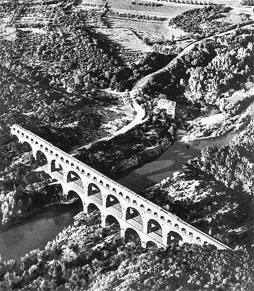 * Wheeler М. Roman Art and Architecture. London, Thames and Hudson, 1964, reprint 1976, p. 22.Длина Аппиева водопровода равнялась 16,6 км, Старого Анио - 63,7, Марциева - 91,33, Клавдиева и Нового Анио вместе - 158. Наземные субструкции водопроводного канала занимали соответственно 89, 400, 1026, 14000 + 8000 м. О количестве арок можно судить по тому, что на десять примерно километров наземной трассы Aqua Marcia их приходилось до тысячи. Высота акведуков, особенно двух- и трехъярусных, известна не всегда. В Клавдиевом водопроводе она местами достигала 31 м, в акведуке Сеговии в Испании - 28, в акведуке города Немауса (Нима) в Южной Франции - 48 *.* См.: Блаватский В.Д. Природа и античное общество. М., "Наука", 1976, с. 36-42.
