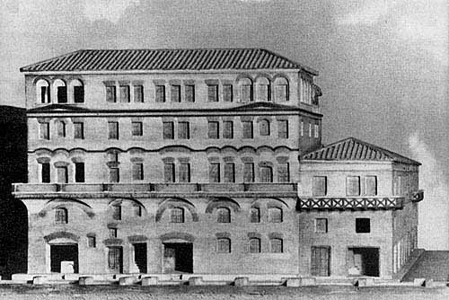 * С конца III в. до н.э. до середины 1. в. н. э. население Рима выросло почти в пять раз, а территория - едва ли в 2-2,5 раза.Этажи существовали с незапамятных времен - еще в 218 г. до н.э., как рассказывает Тит Ливии, бык взобрался на третий этаж дома и бросился оттуда, испуганный тревогой, которую подняли жильцы *, и с самого начала были они чертой не только инсул, но и домусов - "с верхней части дома через окно" обращалась к народу Танаквиль, жена царя Тарквиния Приска **, которая, разумеется, не могла жить в доходном доме; с верхнего этажа домов своих друзей любил смотреть цирковые игры император Август.* См.: Тит Ливий, XXI, 62.Балконы, игравшие такую значительную роль в превращении римских домов в "ульи", назывались по-латински "менианы" по имени Мения, консула 318 г. до н.э., то есть существовали с IV в., и законы против злоупотребления ими принимались, по свидетельству историка Аммиана Марцеллина, "еще в древние времена" *. Консул 186 г. до н.э. Публий Постумин развел сына с невесткой и выделил ей помещение на втором этаже своего дома, отделенное от резиденции семьи и имевшее самостоятельный выход на улицу через балкон. Взгляд на архитектурное сооружение как на совокупность относительно самостоятельных, но сложно взаимосвязанных помещений ясно чувствуется иногда в старых римских храмах -таких, например, как храм Фортуны Примигении в Пренесте (конец II в. до н.э.). Некоторые исследователи с полным основанием видят в таком подходе к зданию коренную особенность римского архитектурного мышления, с самого начала отличавшую его от греческого **. Римляне, во всяком случае, думали именно так и полагали, что на самой заре истории боги научили их** Там же, I, 41.