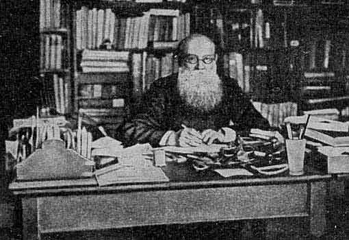 “Огромный голый череп с пучками вьющихся волос по бокам, высокий, мощный лоб; большой нос; умные острые глаза под резко очерченными бровями; блестящие очки, пышные седые усы и огромная, торчащая во все стороны белая борода, закрывающая верхнюю часть груди. Все вместе производило впечатление какой-то странной смеси пророка и ученого” *.Авторитет Кропоткина и в научных, и в политических кругах был чрезвычайно велик. “К словам Кропоткина, - свидетельствует Майский, - прислушивались даже «министры его величества»".* И.М. Майский. Путешествие в прошлое, стр. 132.