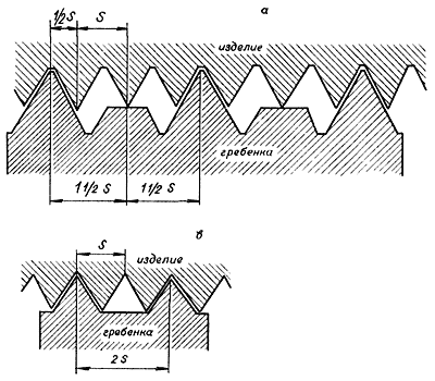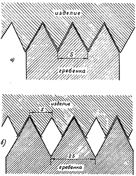 Таким образом, в результате чередования холостых и рабочих оборотов притира получают витки резьбы, отстоящие друг от друга на два шага резьбы, поставленной на станке.
