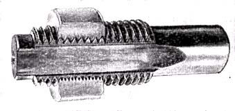 Притир с полуходовой резьбойВпоследствии мне удалось еще более усовершенствовать притир для доводки конусных резьбовых колец. Надо сказать, что изготовление конусных резьбовых калибров (пробок и колец) любых наименований - одна из наиболее сложных инструментальных работ.
