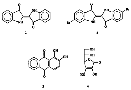В Древнем Риме рецепт производства пурпура относился к категории наиболее тщательно охранявшихся государственных секретов. Согласно указу Нерона, право на ношение одежды пурпурного цвета принадлежало исключительно императору (“королевский пурпур”) [1а]. Подобная романтическая аура продержалась до второй половины XIX в., вплоть до тех времен, когда адепты новорожденной рационалистической науки, органической химии, безжалостно сдернули многовековой покров таинственности и показали, что красящими компонентами природного красителя являются не очень сложные химические вещества, индиго (1) и 6, 6'-диброминдиго (2) (схема 1.1).