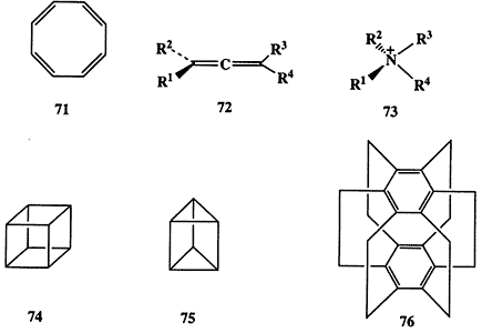 Для химика-органика такие структуры, как кубан (74), призман (75) или суперфан (76), исполнены столь неотразимого очарования, что просто невозможно было не попытаться их синтезировать. Успешное осуществление синтезов этих и других соединений с не менее экзотическими структурными каркасами не только открыло совершенно новые области исследования для экспериментаторов, но и стимулировало разработку новых представлений теоретической органической химии.