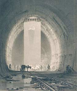 "Трудно создать себе правильное представление, - говорит Смайльс, - о количестве отлитой воды. Можно принять установленным, что если бы она изливалась в течение всего трех часов, то образовалось бы озеро площадью в целый акр (около 4 тысяч кв. метров) и глубиною в один фут... Общее количество воды, отлитой из туннеля при выполнени работ, равняется количеству воды в Темзе во время наиболее высокого прилива на отрезке ее от Лондона до Вульвича".Такие же трудности встретились и в других местах. Выемки, проходившие в весьма рыхлом грунте, требовали сооружения дорогостоящих креплений, в других местах твердый скалистый грунт приходилось взрывать порохом.
