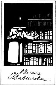 Наука, литература, искусство были для Сергея Ивановича нераздельно связаны. Он был страстным книголюбом, и это была не эгоистическая любовь собирателя редкостей, а постоянный источник духовного обогащения. Каждое воскресенье он проводил в книжной лавке, роясь на полках букинистов. Сергей Иванович отбирал для себя старые книги по физике и другим наукам, а также по искусству, большим знатоком и ценителем которого он был. Разрозненные листы пожелтевшего древнего трактата радовали его больше, чем золотой оклад или сафьяновый переплет иной пустопорожней книги. Книги не только отбирались для себя (хотя здесь он оставлял изрядную долю зарплаты), но и откладывались по его просьбе и часто отсылались в библиотеку Физического института, а также коллегам, ученикам, друзьям и знакомым.Среди книг, имеющихся у меня, самое почетное место занимает атлас "Образцы славяно-русского книгопечатания с 1491 года" (Петербург, 1891). Удивительная это книга, в ней документально воспроизведены заглавные листы, заставки, буквицы и гравюры изданий Краковской, Пражской, Московской, Несвижской, Черниговской, Виленской типографий, образцы письма и даже тайнописи. Эту книгу в одно прекрасное воскресенье в 1946 г. принес продавец букинистического магазина. Он вручил мне ее со словами: "Книгу просил отослать вам Сергей Иванович Вавилов. Я решил доставить ее лично: уж очень книга хороша!"