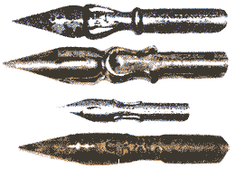 Чернильницы стояли на столах стеклянные, металлические, каменные. Мы носили чернильницы с собою в школу. Фарфоровые невыливайки. Клей назывался "гуммиарабик". Были ножи для разрезания книг. Были спичечницы, пресс-папье, чернильницы для нескольких сортов чернил - лиловые, зеленые, красные, - все это хозяйство соединялось в письменном приборе.