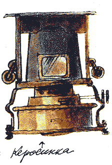 Имелись керосиновые лавки. Там, в цинковых чанах, плескался желтоватый керосин. В бутылках продавали лиловый ядовитый денатурат. У поэта примус золотой потому, что он делался из латуни и, начищенный, сиял во всю мочь. Существовала целая сеть обслуги примусного хозяйства: ремонтные мастерские, медники, запчасти... Примусов-то пылало в стране сотни тысяч. После появления газовых плит, электроплит они отступали, отдавая город за городом, и сейчас примуса остались лишь для походной жизни туристов.