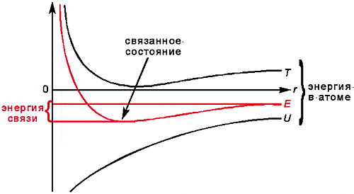 Полная энергия электрона складывается из потенциальной энергии взаимодействия с ионом (ионами) и кинетической энергии. Что же происходит с кинетической энергией электрона при сближении атомов? Эта сугубо положительная величина определяется характером движения электрона, т.е. видом его волновой функции. У медленного электрона волновая функция меняется от точки к точке очень плавно, у быстрого, с большой кинетической энергией, наоборот - быстро осциллирует в пространстве. Возможность заходить в соседние атомы вынуждает волновую функцию электрона изменяться. Она становится более плавной, поскольку теперь область движения частицы расширяется. Очевидно, кинетическая энергия электрона при этом несколько уменьшается. Получается, что сближение возбужденных атомов им выгодно вдвойне: и потенциальная энергия, и кинетическая падают.