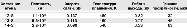 Для возбужденных состояний атома цезия были получены численные данные, позволяющие судить о некоторых параметрах конденсированных возбужденных состояний. Дадим здесь лишь некоторые из них (см. таблицу).