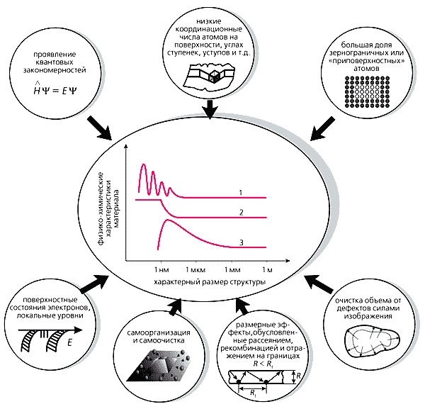 Примеры специфического поведения вещества на субмикронном масштабном уровне