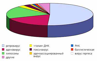 До настоящего времени все клинические исследования сфокусированы на внесении дополнительных генов, а не на коррекции существующих или на их замещении, что значительно сложнее. Но в любом случае ген необходимо доставить во все, в любые или в какие-либо определенные типы клеток и тканей. Отсюда следует два важных вывода. Во-первых, неотъемлемость генной терапии от Т-клеток и, как следствие, отсутствие генной терапии как таковой, а реальное существование генно-клеточной терапии. Оба эти термина мы в дальнейшем будем отождествлять. Во-вторых, как и для любого вида лекарственной терапии, основной проблемой остается доставка действующего начала (в нашем случае гена) в нужное место и с высокой эффективностью. Транспорт и проявление нужного гена в клетке обеспечивает вектор, к которому “прикрепляются” гены или их фрагменты. Вектор - широкое понятие: это общее название “транспортного средства” для целенаправленной доставки того или иного вещества, и не только гена, а любых, даже таких традиционных лекарств, как анальгина или аспирина. Лекарственный препарат, попадающий в организм, как правило, традиционным путем, действует почти на все клетки, а надо подействовать или на определенную группу клеток, или даже на участок генома, специфичный для определенной группы клеток. С другой стороны, транспортируемое вещество необходимо “защитить” от повреждений. Сегодня самая большая проблема медицины, которую пытаются решить десятки биотехнологических компаний, - направленная, т.е. векторная доставка и ее эффективность.