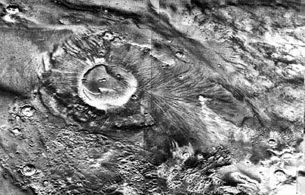 óäàðíûå êðàòåðû â êàëüäåðå è íà ñêëîíàõ. Ñíèìîê ÍÀÑÀ ãåîëîãè÷åñêîé èñòîðèè Ìàðñà, êàê è â èñòîðèè Çåìëè, áûë ïåðèîä èíòåíñèâíîé âóëêàíè÷åñêîé äåÿòåëüíîñòè, ñîïðîâîæäàâøèéñÿ âûáðîñîì â àòìîñôåðó óãëåêèñëîòû, âîäÿíûõ ïàðîâ è âîññòàíîâëåííûõ ëåòó÷èõ êîìïîíåíòîâ (ÑÍ4, Í2, NH3, H2S). Ñëåäîâàòåëüíî, ïàëåîàòìîñôåðà ïëàíåòû èçíà÷àëüíî áûëà âîññòàíîâëåííîé. Î òîì æå, ÷òî íà ñìåíó åé ïðèøëà îêèñëåííàÿ (êèñëîðîäñîäåðæàùàÿ), îäíîçíà÷íî ñâèäåòåëüñòâóþò îðàíæåâûå è êîðè÷íåâàòî-êðàñíûå òîíà ñîâðåìåííîé ïîâåðõíîñòè, îáóñëîâëåííûå ïîâûøåííîé êîíöåíòðàöèåé îêèñëîâ æåëåçà â âåðõíåì ñëîå «ïî÷âû». Îáîáùåíèå ðàçíîîáðàçíûõ äàííûõ, ïîëó÷åííûõ îðáèòàëüíûìè è ïîñàäî÷íûìè áëîêàìè «Ìàðñà» è «Ìàðèíåðà», ïðèâåëî êîìàíäó Âèøíÿêà ê ôîðìóëèðîâêå îñíîâíûõ âûâîäîâ è âûòåêàþùèõ èç íèõ çàäà÷ áèîëîãè÷åñêîé ÷àñòè ïðîãðàììû «Âèêèíã»: