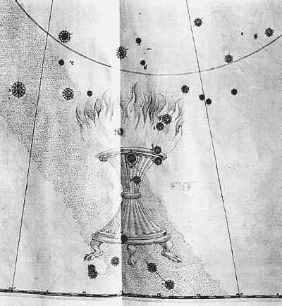 На карту Кассиопеи Байер нанес новую звезду, вспыхнувшую в 1572 г. Ее изображение отличается от других своеобразной передачей яркости: внутренний диаметр не имеет закрашенных фрагментов, как у обычных звезд, блеск которых считался неизменным.