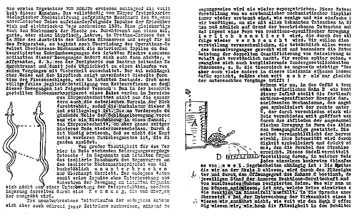 Вводная глава машинописной версии трактата “Введение в сравнительное изучение поведения” (известное также под названием “Русская рукопись”, хранится в Российском государственном военном архиве: Ф.4П. Оп.24А. Д.36. Л.6-12).<…> При сравнительно-филогенетическом анализе поведения животных и человека мы столкнулись со сложнейшей системой врожденных видоспецифичных форм поведения, или, говоря языком физиологии, безусловных рефлексов и эндогенных автоматизмов. Они представляют собой характерный для вида опорный скелет человеческого поведения в целом и социального поведения в частности. Вместе со всеми другими жесткими структурами организмов они выполняют двоякую функцию: с одной стороны, служат опорой, а с другой - лишают их пластичности. Как все опорные органы, они обеспечивают выживание вида и могут приспосабливаться к изменившимся условиям окружающей среды лишь с медленной скоростью, с которой обычно изменяются виды (т.е. за геологическое время для самых маленьких приспособлений). Подобно органам, эти видоспецифичные нормы поведения меняются от особи к особи только внутри узко ограниченных видовых пределов изменчивости.© Перевод и публикация Гороховской Е.А.