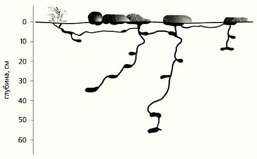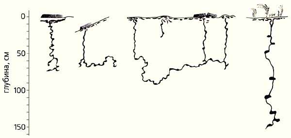 Зимовочные камеры муравья-древоточца иногда расположены и в тонких корнях диаметром не более 10 см.