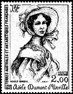 названной именем его жены Адели (ее изображение на почтовой марке).Жизнь известного французского исследователя и его жены оборвалась трагически. Дюмон-д’Юрвилю было около 50 лет, когда он, возвратившись из экспедиции, в мае 1842 г., отправился с женой и сыном Жюлем из Парижа в приятную прогулку - полюбоваться фонтанами Версаля. Все трое погибли во время железнодорожной катастрофы.