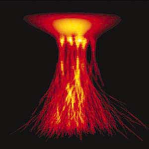 Рис.5. Фотография спрайта (По: Pasko V.P., Stenbaek-Nielsen H.C. // Geophys. Res. Lett. 2002. V.29 (A10); doi: 10.1029/2001GL014241).