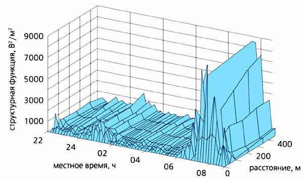 Рис.8. Пример структурно-временнОго анализа данных эксперимента по измерению электрического поля в условиях тумана