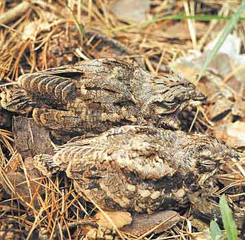 Птенцы обыкновенного козодоя - одной из немногих птиц нашей фауны, вообще не строящих гнезд. Яйца они откладывают прямо на землю, поэтому единственное спасение от врагов - защитная окраска яиц и оперения.