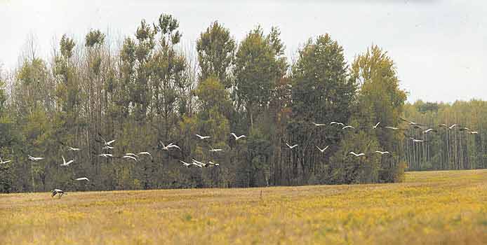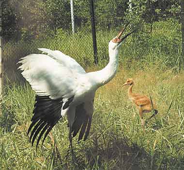 Обитатели окского питомника - генофонд журавлей России, созданный для того, чтобы печальная история исчезновения зубров в природе не повторилась. У нас разработаны уникальные методики вольерного содержания и разведения редких видов журавлей, изучается их биология, а кроме того, проводятся опыты по интродукции журавлей в природу. Все семь видов журавлей благополучно выводят потомство, за время существования питомника на свет появилось более 200 птенцов. Десять лет в сотрудничестве с питомником Международного фонда охраны журавлей в Барабу (штат Висконсин, США) осуществляется программа “Стерх”, цель которой - восстановление очень малочисленной (20 особей) в настоящее время вольноживущей западносибирской популяции стерха - эндемика России. Ежегодно журавлята, выращенные в Окском заповеднике, пополняют угасающую природную стаю, за эти годы более полусотни птиц уже выпущено на волю.