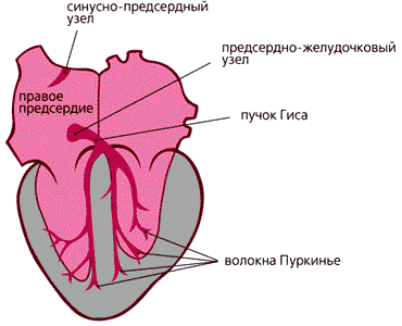 Функция сердца, как известно каждому, - обеспечивать циркуляцию крови по сосудам. Происходит это благодаря последовательному расслаблению предсердий и желудочков (фаза диастолы), а потом их сокращению (фаза систолы). Заканчивается цикл общим расслаблением всех четырех камер. Сокращение сердечной мышцы (миокарда) вызывается электрическим импульсом, который возникает в клетках синусно-предсердного узла, называемого водителем ритма. Далее возбуждение передается по предсердиям и достигает предсердно-желудочкового узла, через пучок Гиса доходит до его конечных разветвлений - волокон Пуркинье - и передается желудочкам. Клетки сердечных камер сокращаются и расслабляются согласованно, и тем обеспечивается отчетливый ритм в деятельности насоса, перегоняющего кровь.