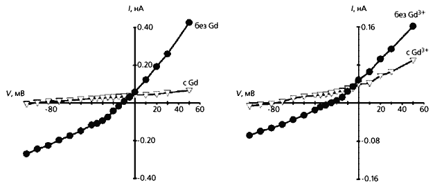 А что происходит при растяжении этой клетки? Оказалось, что оно приводит к гиперполяризации мембраны и значительно уменьшает силу тока по сравнению с контролем. (Интересно, что ионы гадолиния действуют еще сильнее, чем механический стимул.) Влияние анионов хлора здесь тоже не было обнаружено.