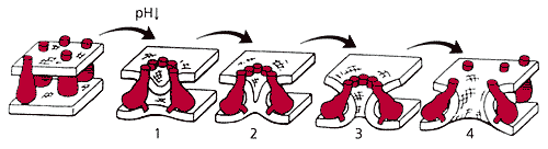 После понижения рН образуется розетка слияния (1),