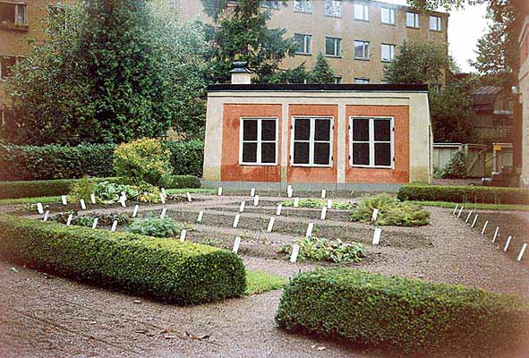 На заднем плане - сооружение для зимнего содержания теплолюбивых растений (предшественник современных оранжерей).