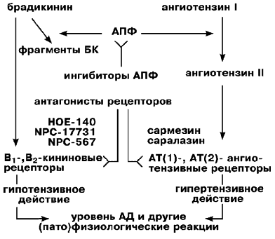 Пептиды — одна из важнейших систем регуляции ГОМЕОСТАЗА. Этот термин, введенный в 30-х годах американским физиологом У.Кенноном, означает жизненно важное равновесие всех систем организма. По мере усложнения наших представлений о нормальной, а тем более патологической, физиологии это понятие уточнили как ГОМЕОКИНЕЗ, т.е. подвижное равновесие, баланс постоянно меняющихся процессов. Организм соткан из миллионов “гомеокинезиков”. Эта огромная живая галактика определяет функциональный статус всех органов и клеток, которые связуются регуляторными пептидами. Как мировая экономическая и финансовая системы — множество фирм, производств, заводов, банков, бирж, рынков, магазинов... А между ними — “конвертируемая валюта” — нейропептиды. Все клетки организма постоянно синтезируют и поддерживают определенный, функционально необходимый, уровень регуляторных пептидов. Но когда случаются отклонения от “стационарности”, их биосинтез (в организме в целом или в отдельных его “локусах”) либо усиливается, либо ослабевает. Такие колебания возникают постоянно, если речь идет об адаптивных реакциях (привыкании к новым условиям), выполнении работы (физических или эмоциональных действиях), состоянии предболезни — когда организм “включает” повышенную защиту от нарушения функционального баланса. Классический случай поддержания равновесия — регуляция артериального давления крови. Есть группы пептидов, между которыми существует постоянная конкуренция — повысить/понизить давление. Для того чтобы бежать, подниматься в гору, париться в сауне, выступать на сцене, наконец, думать — необходимо ФУНКЦИОНАЛЬНО достаточное увеличение артериального давления. Но как только работа закончилась, вступают в действие регуляторы, обеспечивающие “успокоение” сердца и нормальное давление в сосудах. Вазоактивные пептиды постоянно взаимодействуют, чтобы “разрешить” повысить давление до такого-то уровня (не более, иначе сосудистая система пойдет “вразнос”; общеизвестный и горький пример — инсульт) и чтобы после окончания физиологически необходимой работы нормализовать работу сердца и сосудов. Такова общая схема. Существует целый раздел кардиологии, изучающий роль пептидов при гипертонической болезни и инфаркте миокарда. И получено множество доказательств “вины” определенных пептидов, когда они из факторов “добра” превращаются в факторы “зла”. В течение последних лет исследователи многих лабораторий мира изучали соотношение ангиотензиновых и кининовых пептидов как антиподных регуляторов артериального давления. Если ангиотензины, способные сужать сосуды, повышают давление (прогипертензивное действие), то кинины, наоборот, расширяя просвет сосудистой стенки, давление понижают. Ключевой фактор взаимодействия этих пептидов — ангиотензин-превращающий фермент (АПФ), ОДНОВРЕМЕННО участвующий в превращении ангиотензинов в активную форму и инактивирующий кинины. Огромный интерес к АПФ со стороны медиков понятен, поскольку препараты, тормозящие его активность, используются как наиболее эффективные и распространенные лекарства для лечения гипертонической болезни. В 1977 г. группа американского биохимика Д.Кашмена расшифровала структуру активного центра молекулы АПФ и синтезировала соединения, эффективно блокирующие его активность.
