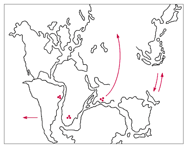 Палеореконструкция расположения континентальных блоков 200 млн лет назад в ходе распада Гондваны. Точками показаны раннепротерозойские Mn-рудные месторождения, стрелки указывают направление движения континентальных блоков [17, с упрощ. и доб.].Раскол Гондваны привел к началу образования современных Индийского и Атлантического океанов. Этот процесс запечатлен на палеогеодинамической реконструкции расположения континентов 200 млн лет назад, выполненной с учетом данных глубоководного бурения [20]. Конечным результатом последовавших затем событий стало современное расположение континентальных блоков с Mn-рудными месторождениями, а также асимметрия в накоплении марганца в молодых океанах и древнем Индо-Тихоокеанском секторе.В заключение подчеркнем, что специфика геохимических свойств Mn на суше и в океане открывает новый путь для историко-геологических построений, а также для разработки проблемы рудогенеза на планете.