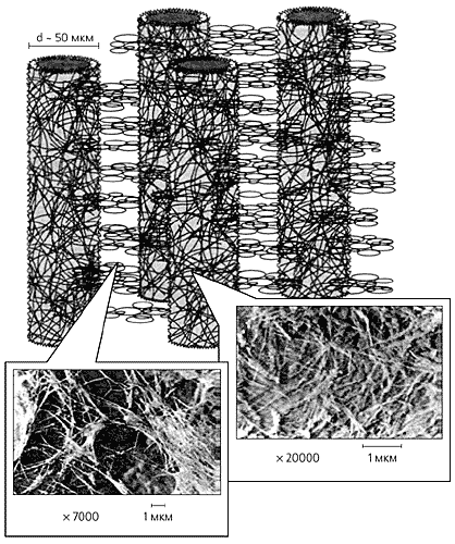 Рис.7. Модель колончатой структуры катодных депозитов.