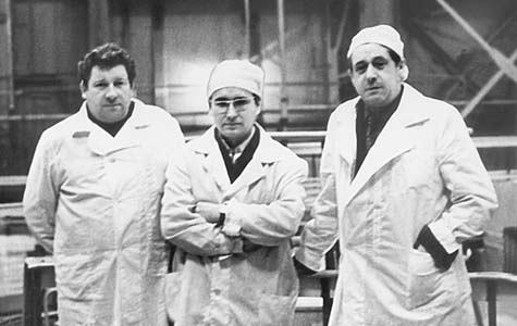 Леонид Андреевич (крайний справа) в центральном зале тяжеловодного реактора комбината №817 (Челябинск-40). 1960-е годы.