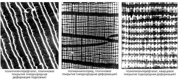 и одного состава, но с разным покрытием после неоднородной и однородной деформации полимера-подложки.