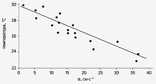 События, описываемые рассматриваемой зависимостью, можно трактовать так. При волнах Россби с амплитудой колебания скорости течения больше 30 [10] см/с крупномасштабное течение направлено вдоль экватора на запад, в направлении распространения волн, если же эта амплитуда меньше - то на восток. Скорость крупномасштабного течения пропорциональна амплитуде колебания скорости течения волн Россби, а точнее разности V0 – V.