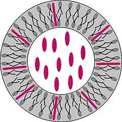 Липосомы (фосфолипидные пузырьки) давно исследуются как перспективная лекарственная форма, существенным образом меняющая распределение лекарственного вещества и защищающая его от воздействия ферментов; пригодились они и нам. Эти микросферы (размером от 25 нм до 1 мкм) служат контейнерами для лекарственных веществ, причем полярные соединения располагаются во внутреннем водном объеме липосом, а гидрофобные — хорошо растворяются в мембране. Мы занялись разработкой липосомной формы ДОФА, надеясь, что они будут обладать определенными преимуществами перед раствором. Во-первых, мембрана липосом предохранит ДОФА от преждевременного декарбоксилирования и не допустит падения концентрации активного вещества в крови. Таким образом, отпадет необходимость в использовании лошадиных доз препарата. Во-вторых, так как поры капилляров меньше диаметра липосом, они не смогут покинуть кровоток, а, следовательно, ДОФА не попадет в периферические ткани и не вызовет побочных явлений.